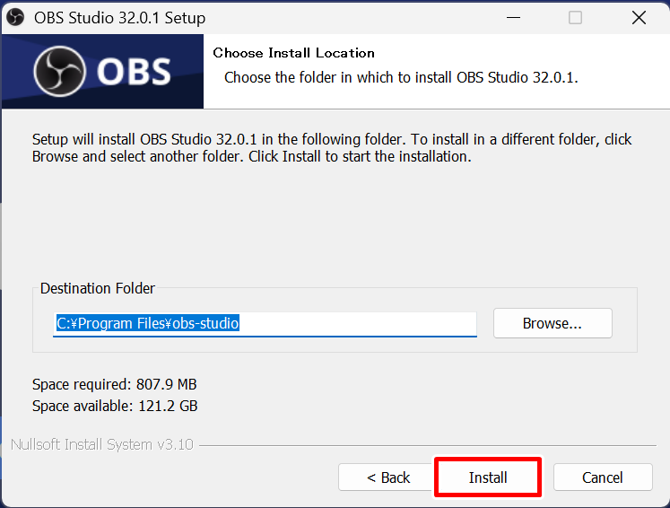インストール先が表示されます。問題なければ「Install」をクリックしましょう。