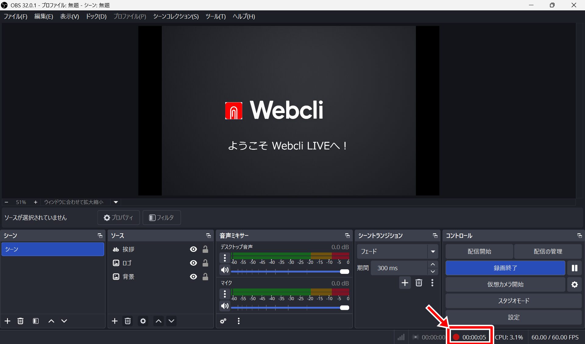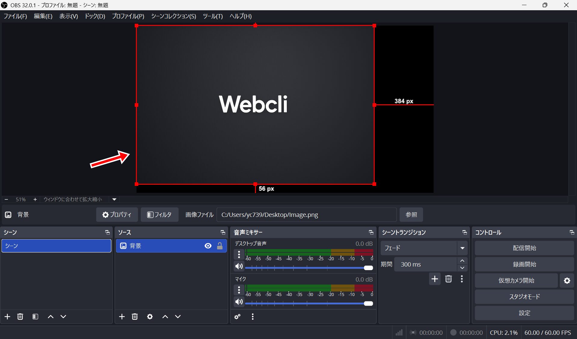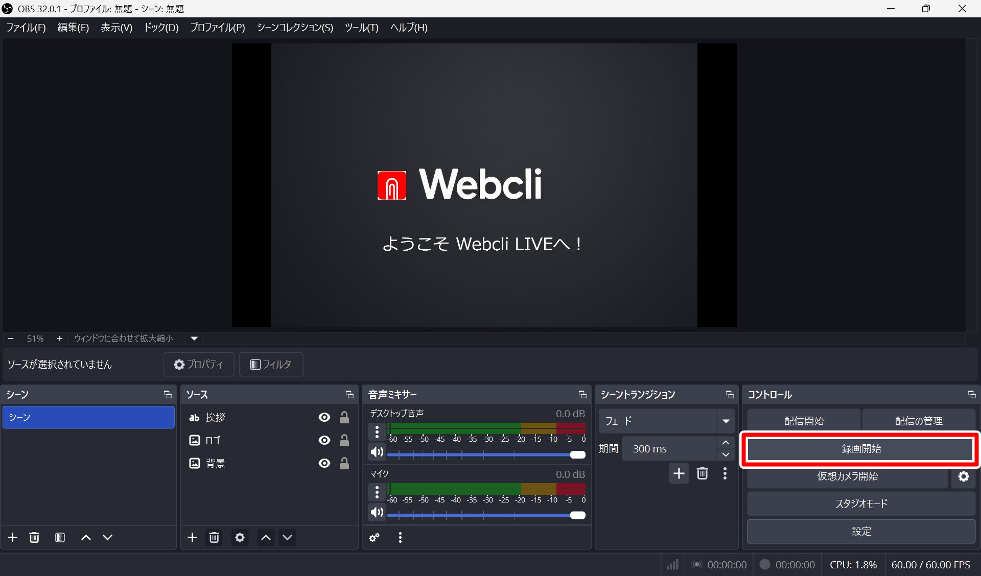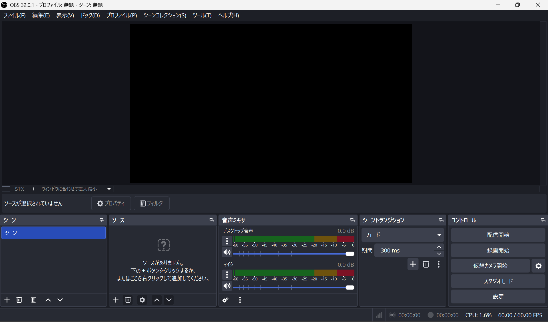 配信中や録画中に画面を編集をしてシーン切り替えとして映し出す事ができます切り替えることができます。 - 設定: