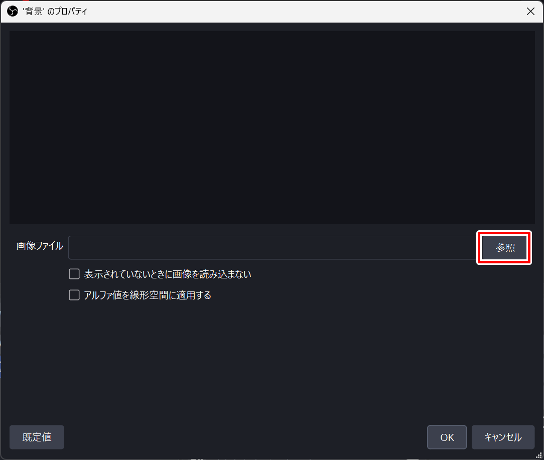 次に画像を読み込みます。「参照」をクリックしパソコン内に保存されている画像を選択しましょう。
