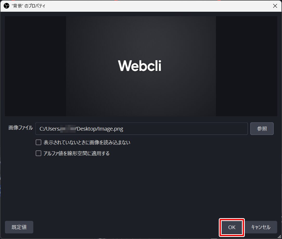 選択した画像は画面に表示されます。問題なければ「OK」をクリックしましょう。