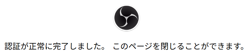 認証が完了したらウェブページを閉じOBS Studio に戻りましょう。