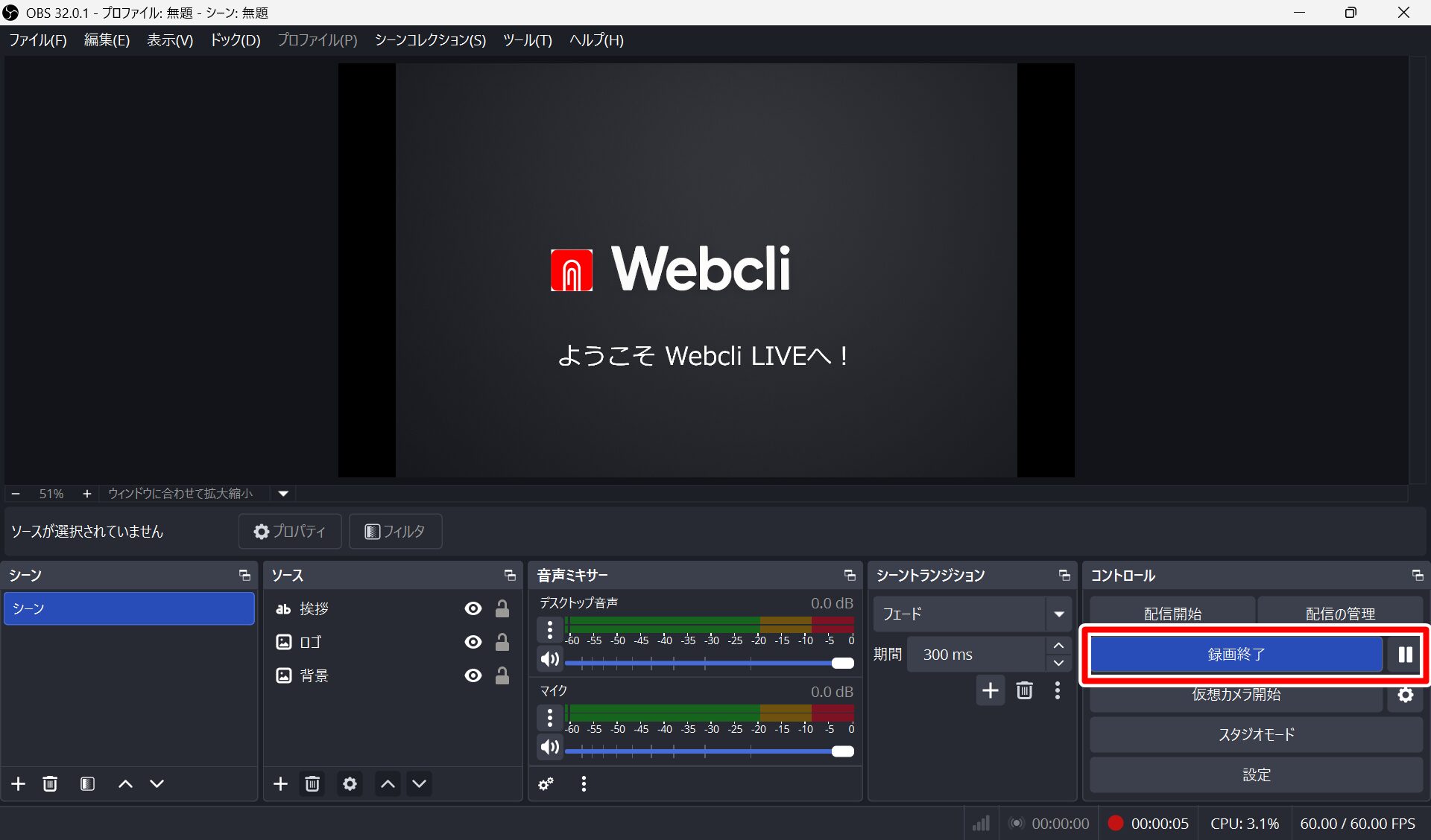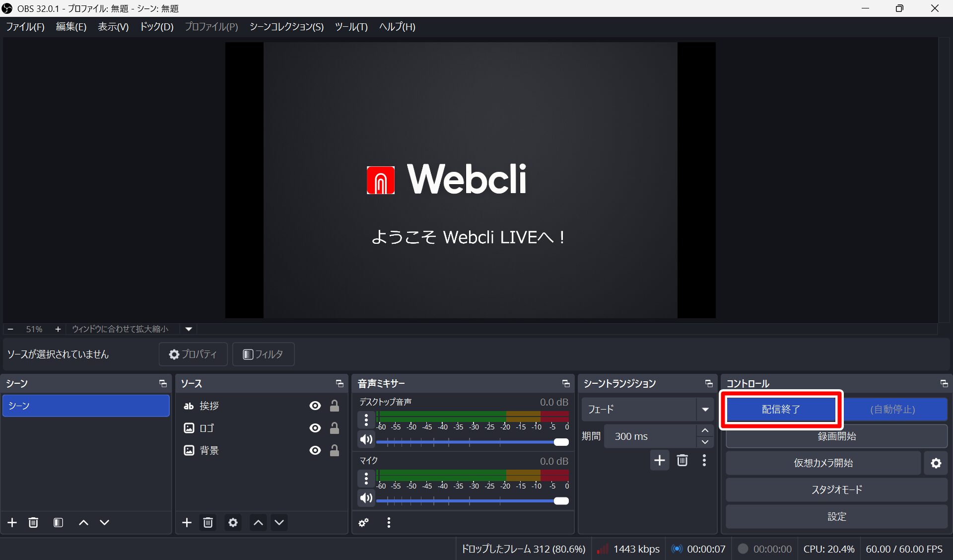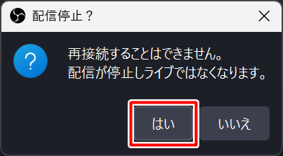 確認ダイアログが表示されるので「はい」をクリックしましょう。これで配信が完全に終了します。