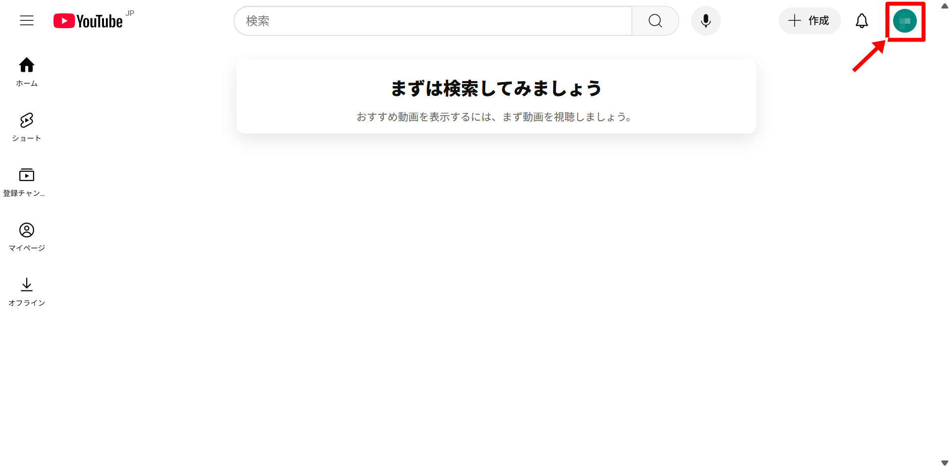 YouTubeにアクセスし、右上にある「アイコン」をクリックします。